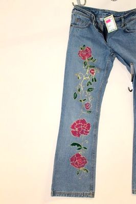 Джинсы, ручная роспись "Пионы"