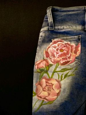 На фото джинсы, расписанные на заказ. Цветы, один из самых модных сейчас трендов. Их рисуют на джинсах, куртках, обуви, сумках. И мы не отстаём)! Краски: акрил по текстилю. Рисунки не стираются, не трескаются, тк краска эластичная. Смотрится волшебно!