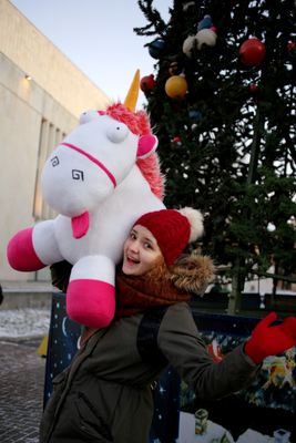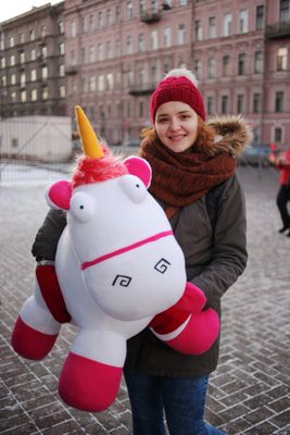 Единорог Флаффи из мультфильма "Гадкий Я". Умеет стоять, сидеть, мягкий и приятный. Будет замечательным подарком для вашего ребенка! В длину Флаффи чуть больше 1 м, обхват пузика около 1 м.