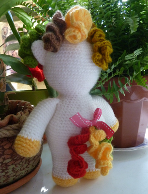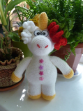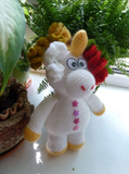 Изделие выполнено из акриловой пряжи. Глазки вставные. Стоит с опорой. Рост- 23 см. Возможно выполнение на заказ в другом цвете.