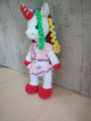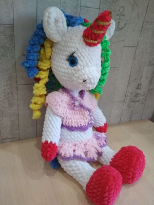 Плюшевая единорожка переезжает в свой новый дом к маленькой хозяйке. Рост 42 см без учета ушек Самостоятельно сидит .Стоит с опорой .Двигает ручками и ножками .Жилетка и юбочка съемные. Возможно повторение в любом цвете.Связана из YARNART VELOUR по МАСТЕР-КЛАССУ Ольги Гаевской