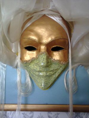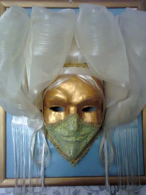 Венецианская маска из папье-маше (акрил, лак). Высота изделия на багете - 54 см.