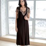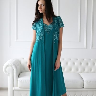 Элегантный комплект "Корнелия" изготовлен из материала вискоза, состоит из халата и ночной сорочки. Халат приталенного силуэта, с короткими рукавами, длиной до середины голени. Ночная сорочка на тонких бретелях, с v-образным вырезом горловины. Комплект "Корнелия" займет достойное место в гардеробе любой модницы. Доставка почтой России оплата при получении