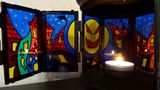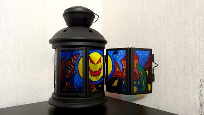 Работа на заказ. Авторская ручная работа в технике витражная роспись. Выполнение в течение 2-3 дней. Стальной фонарик-подсвечник "Город Хэллоуин (Хеллоуин)" из серии "Страшные сказки". Работа выполнена высококачественными витражными красками, рисунок не боится света и воды. Доступные цвета фонарика: белый, серебристый, черный. Высота 21 см, диаметр 12 см. Возможна доставка по всему миру.