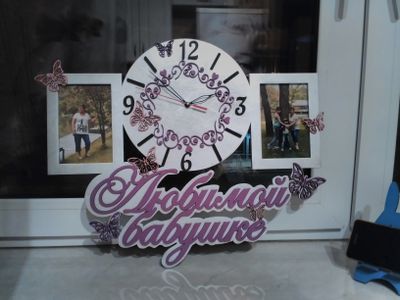 Фотормака с часами 50*45см. Береза шлифованная с покарской 6мм. Рамочки защищены тонким пластиком. Срок изготовления 4 рабочих дня. Цвета могут быть любые.