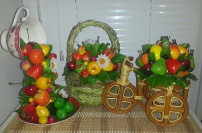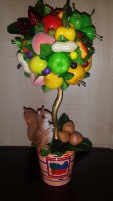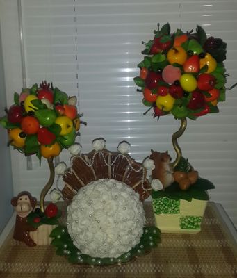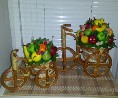 Фруктовые топиарии. Маленькие 900р., средние 1500р., большие 2000р. Маленькие велосипеды из ротанга 600р., большие 1200р.