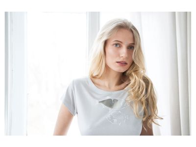 ONE SIZE (42-46) Серая футболка из невесомого, шелковистого трикотажа с принтом "Вобла". Состав: 100% эвкалипт
