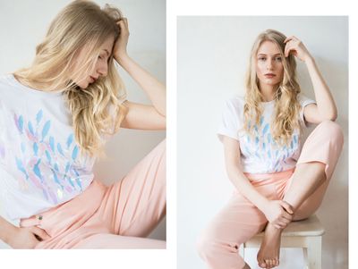 ONE SIZE (42-46) Белая футболка свободного кроя с манжетами и принтом с голубыми и перламутровыми рыбками. Состав: хлопок 100%