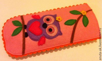 Футляр изготовлен из жесткого фетра, хорошо держит форму. Надежно защитит очки от повреждений. Приятен и мягок для рук. Подойдет для не слишком больших очков. Футляр для очков с яркой совушкой станет замечательным подарком близким, коллегам, друзьям или вам самим. Доставка составит 200 рублей (почтой по России)