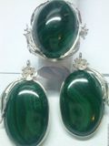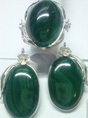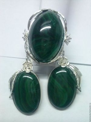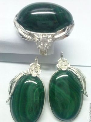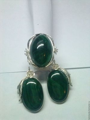 гарнитур Серьги Кольцо Филигрань серебро 925* камни Малахит Природный Натуральный ручная работа