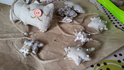 Гирлянда - украшение для дома из натурального льна и ситца с бисером и пайетками.