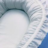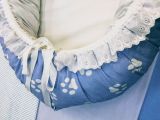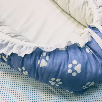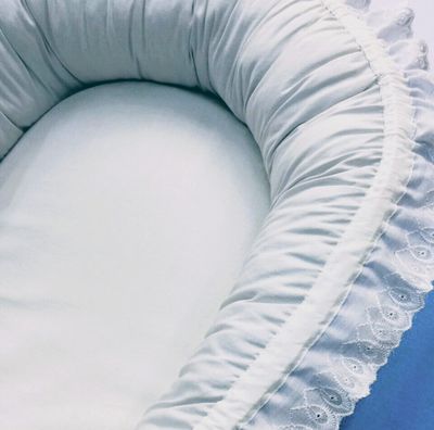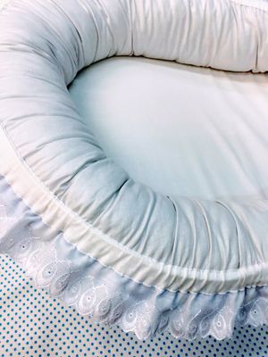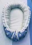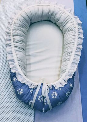 Гнездышко-кокон для новорожденного. Размер спального места: ширина 35 см, длина 65 см, высота 18 см, Материалы: бязь произво Иваново, темноголубого и светло-серого цвета, шитье хлопок производство Иваново, холлофайбер, поролон, репсовая лента, фксаторы пластик, наконечники пластик. Цена указана вместе с доставкой. На заказ, цвет и размер может быть на Ваш выбор.