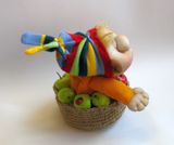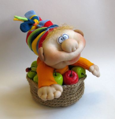 Стоит в лесу тесовый дом, Дом гнома! А в нём живёт весёлый гном, Гном-дома! Он кормит белок шишками, За стол садится с мишками, С пушистыми зайчишками Да с мышками-норушками! Он делится игрушками С кукушками-болтушками, С енотами и с дятлами, С совой, обросшей патлами! Веселый яблочный Гном станет хорошим подарком для близких и родных, друзей и знакомых. Принесет счастье и удачу в Ваш дом. Подарит хорошее настроение! Высота около 19 см, диаметр основания около 12 см.