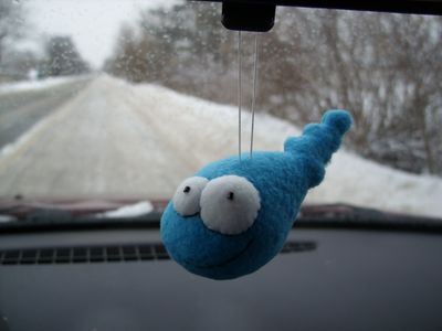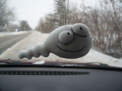 Забавная маленькая игрушка-подвеска. Выполнена из флиса белого и голубого цвета. Помещается в ладони.