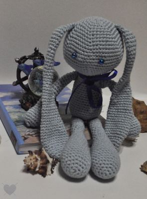 Милый зайчонок, мне кажется, немного печальный или задумчивый. Приятный подарок для ребенка, который сможет стать его лучшим другом и украшение интерьера. Сделано с любовью.