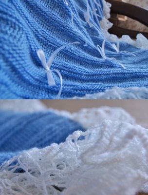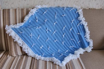 Голубой плед с белыми рюшами по краям и бантиками из ленты. Невероятно нежный, мягкий и уютный. Создан специально для деток. Размер без рюш 86*86 см. Состав: шерсть + акрил Цвет и размер любой