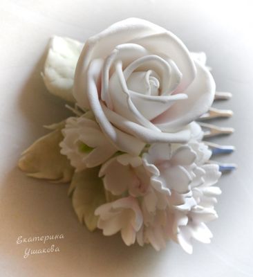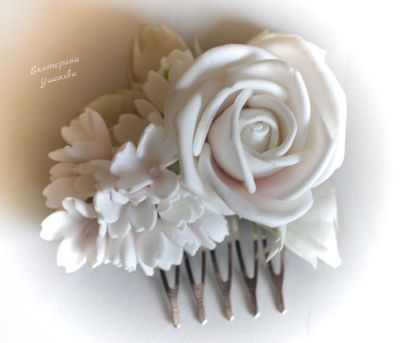 Гребень с композицией из фоамирана "Невеста".Очень нежная композиция подойдет для чувствительной натуры и умерит пыл страстной испанке.Гребешок станет прекрасным украшением для невесты.Изделие сделано и окрашено в ручную с особым вдохновением