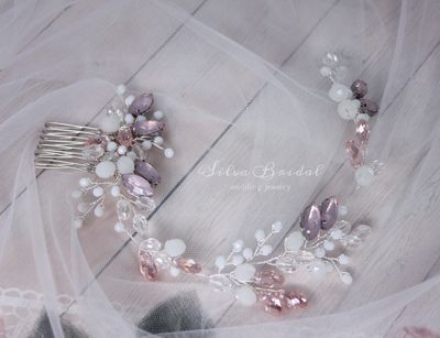 Красивейшее украшение Silva Bridal в очень интересном цветовом решении. Особенно красиво будет смотреться в локонах и низком пучке.
