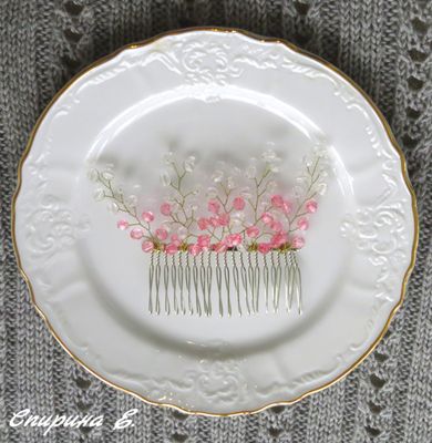 Гребень выполнен из розовых и прозрачных стеклянных бусин