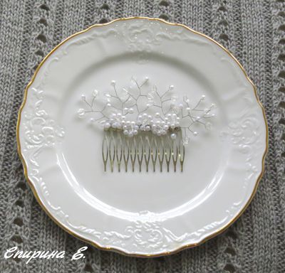 Гребень выполнен из стеклянных и акриловых бусин на ювелирной проволоке