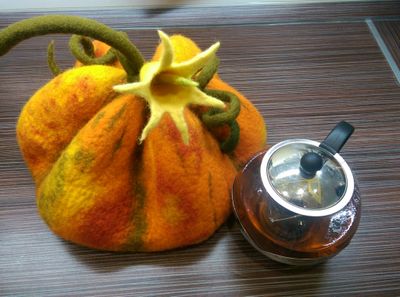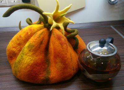 Солнечная, оранжевая, сочная :-) грелочка для чайника - Тыковка. Она хорошо держит тепло. Выполнена из 100% шерсти (кардочес). Буду рада выполнить на заказ такую красотульку.