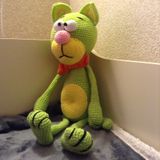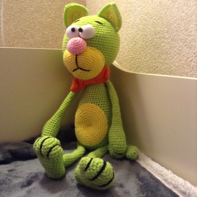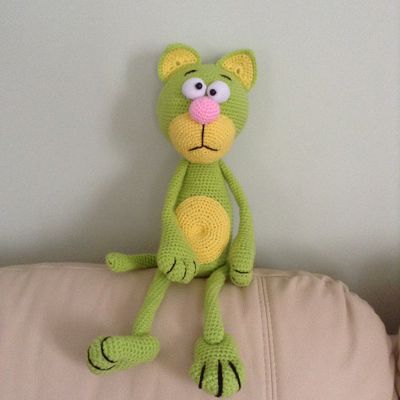 Вязанный крючком котик. Высота сидя 35 см. Забавная игрушка малышам и взрослым. Можно стирать.