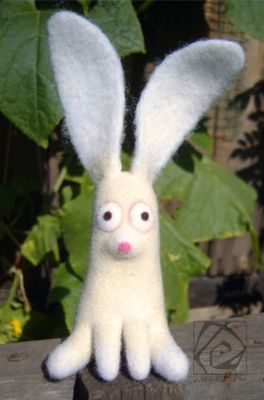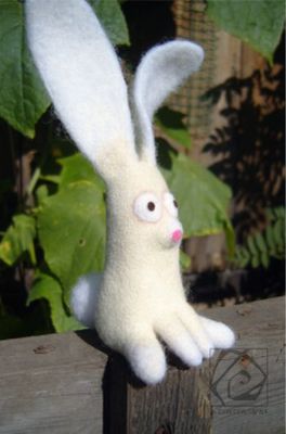 Высота зайчика 15 см. История зайчика представлена в гифке в группе В Контакте. Изготовлен из овечьей шерсти. Уши на проволочном каркасе. Берегите от маленьких детей, так как игрушка имеет отрывающиеся детали.