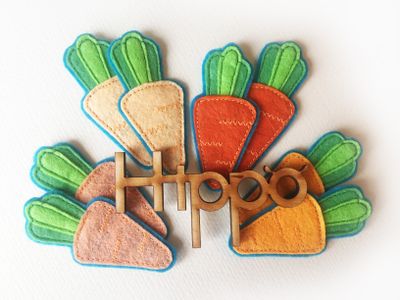 Зайчик этот не простой, он держит корзинку с морковками для игры "Найди пару" и "Мемори" (у меня 4 пары морковок разных оттенков оранжевого). Размеры: 15Х20 см, морковки - 7 см, он плоский и компактный, его легко можно брать с собой в дорогу.чик