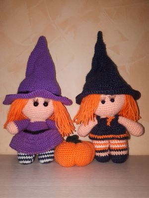 Ведьмочки связаны из 100%акрила. Набивка на выбор -шерсть/холофайбер. Глаза пришиты. Цена за 1куклу