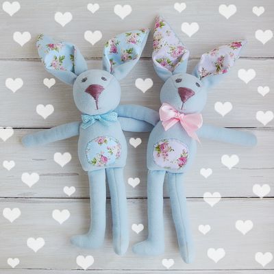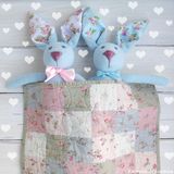 Мягкий, милый, обнимательный Зайка станет другом для ребенка. Если снять бантик, игрушка сможет стать сплюшкой для малыша в кроватке и оберегать сладкий детский сон. Зайка полностью безопасен, глазки и носик вышиты нитками мулине, никаких пуговиц и бусин нет. Наполнитель - гипоаллергенный холофайбер. Рост заек - 40 см с ушами. Стоимость 1300=руб. за одного Зайку или 2500=руб. за пару (одеялко не продается) Рекомендации по уходу: Ручная бережная стирка при 30 градусах, не выкручивать, не выжимать. Уши можно прогладить утюгом со стороны хлопка.