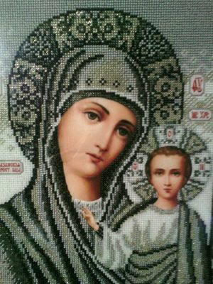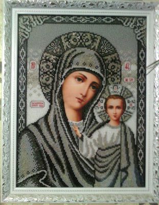 Одна из самых сильных и чтимых икон в православии - икона Божьей Матери ′Казанская′ (венчальная икона). Выполнена в благородных жемчужно-серых тонах. 41 см х 31 см Полная зашивка. Вышита с любовью.