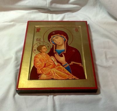 Список иконы Одигитрия. Византия XIII век. Афон. Монастырь Хиландар. Материалы: Иконная доска с ковчегом, торцевые дубовые шпонки, левкас, поталь, темпера, масло, олифа, натуральный лак. Размеры: Ширина 24 см. Высота 30 см, Толщина 2,5 см. Икона - особенный духовный подарок близкому человеку. Она послужит не только украшением интерьера, но и молитвенным образом и оберегом для дома и семьи. Доставка во все регионы России, согласно установленным правилам почтовых служб.