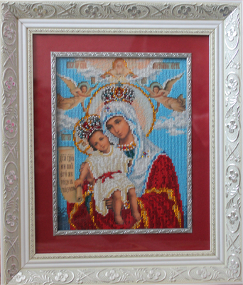 Вышивка чешским бисером, ручная работа,багет оформлен в мастерской, освящена. Пред иконой Пресвятой Богородицы “Милующая”, или “Достойно есть”, молятся при душевных и телесных болезнях, при окончании всякого дела,при эпидемиях, о счастье в браке, при несчастных случаях.Вышитая икона отличный подарок для родных и близких, икона украсит Ваш интерьер и не оставит равнодушным Ваших гостей.