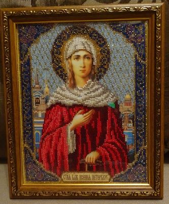Икона «Святая Ксения Петербургская», вышитая чешским бисером.Размер 19,5х23,5 см.Цена с учетом багета! Святую блаженную Ксению Петербургскую молят о помощи и заступничестве, о мире и счастье в семье, о рождении долгожданного ребенка, о выздоровлении близких, о возвращении любимых, о множестве дел, из которых складывается человеческая жизнь. День памяти 6 февраля (24 января по старому стилю).