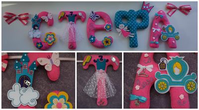 Имя из фетра в тематике "Принцесса". Изготовление имени возможно в любых расцветках, с разнообразными декоративными элементами с учётом ваших пожеланий. Стоимость одной буквы высотой 20 см 500 рублей