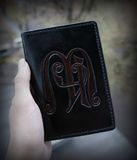 Именная обложка для паспорта из натуральной кожи растительного дубления. Полностью ручная работа: гравировка, окрашивание, обработка, сшивание седельным швом вощеными нитями. Выполняется по индивидуальному заказу, по вашим инициалам (либо другой рисунок), цветовая гамма обсуждается. Возможно использование в качестве обложки на автодокументы, вкладыш в наличии (продается отдельно). Ценно, надежно, эксклюзивно!