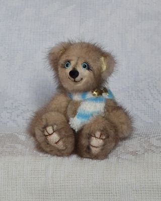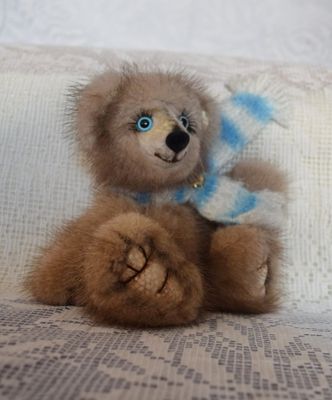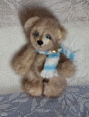 Мишутка из натурального меха голубой норки. Сшит полностью вручную. Глазки - стекло. Плотно набит синтепоном. Ручки - ножки подвижны. Рост Мишутки 13см. Подарит тепло и радость своему новому другу.