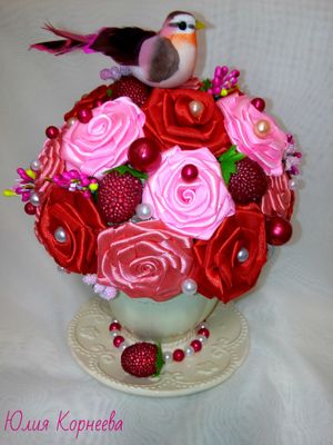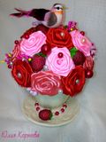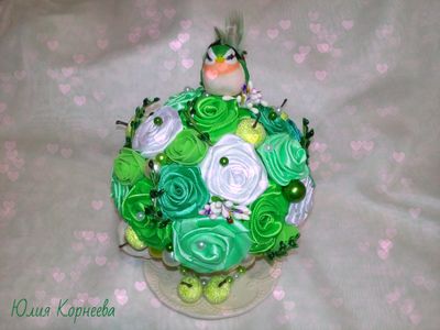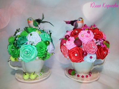 Яркая интерьерная композиция из атласных лент в чайной паре порадует красотой и оригинальностью. Это прекрасный подарок родным, близким и друзьям на любой праздник! Высота - 20 см, ширина - 15 см. Состав: чайная пара, сизаль, атласные ленты, декоративные элементы.