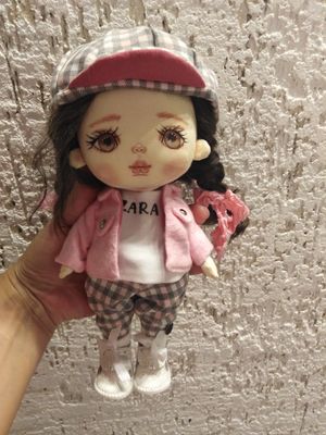 * Куколка ручной работы, в единственном экземпляре, 23см. * Стоит, сидит самостоятельно. *Ручки гнутся, может держать свою игрушку. * Головка поворачивается, наклоняется в любую сторону. *Роспись личика- художественный акрил и пастель. * Тело сшито из натурального хлопка, набито синтепухом, утяжелено. *Одежда вся съёмная, обувь из натуральной кожи. * Волосы натуральные, мягкие и лёгкие, ангорская козочка.