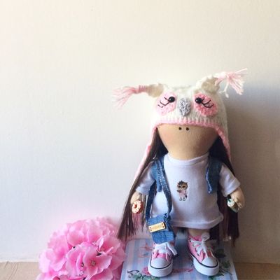 Интерьерная текстильная кукла . Станет прекрасным дополнением домашнего уюта и тепла. Стоит и сидит самостоятельно. Одежда куколки не снимается, так как куколка Интерьерная. Кукла отлично подойдёт в качестве подарка для ваших близких.