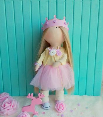 Текстильная кукла Малышка- не просто кукла, а настоящая подружка для девочки, девушки и женщины. Кукла подходит как для украшения интерьера, так и для бережный игры. Одежда съемная.