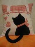 Подушка сшита из льна, хлопка, аппликация - пэ.Верхняя наволочка на молнии.Внутренняя подушка из гипоаллергенного наполнителя в наволочке из х/б ткани.