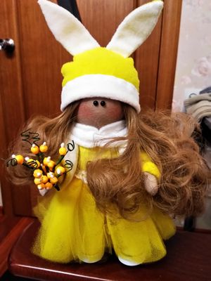 Интерьерная текстильная кукла ручной работы. Рост около 25 см. Стоит самостоятельно. Одежда не съёмная.