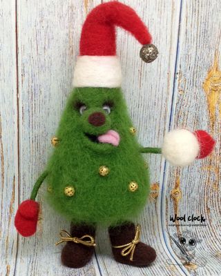 Игрушка сделана из шерсти (кардочеса), украшена бусинами. Ножки и ручки на каркасе из проволоки. Глазки вклеены (бегающие). Рост 16 см с колпаком. Тонирована художественной пастелью. Забавная и позитивная ёлка по имени Палыч станет отличным подарком на Новый год и оригинальным украшением праздника.