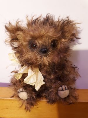Мохер, гранулят, синтепон, шебби лента, шплинтовое крепление. Все части тела подвижны.