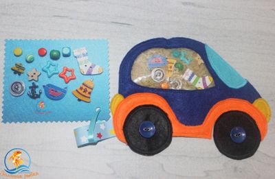 Развивающая игрушка Искалочка Машинка. Суть игры проста =) Искалочка имеет прозрачное окошко наполненное рисом и блестками среди которых "прячутся" мелкие предметы. Ребенок перебирает пальчиками и ищет мелкие предметы. В помощь родителям и детям есть карточка с изображенными "спрятанными" предметами. Такая игрушка помогает развивать мелкую моторику рук, тактильное восприятие, мышление, благотворно влияет на нервную систему в целом. Размер Машинки: общий 13х18 см окно 4,5х9 см