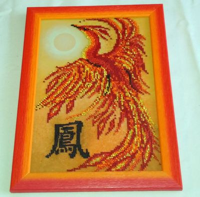 Феникс. Помогает бездетным парам. Подарит своим обладателям счастье, победу в любом деле, мудрость, красоту, процветание и помощь. Китайский Феникс поможет творческим людям достичь своих целей и поспособствует тому, чтобы все ваши желания осуществлялись. Размер с рамкой 21х28