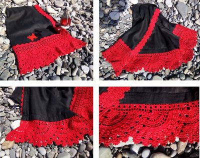 Юбка с запАхом выполнена из льняной ткани и вязаного крючком кружева. Само полотно юбки фабричного производства. Кружева – моя ручная работа. Юбка – 100% лен. Подклада нет, но т.к. ткань плотная и плюс запАх, ноги не просвечивают. Кружева – 100% хлопок. Размер 46-48, но засчет запАха можно просто перешить пуговку ближе или дальше, если вы постройнели или немного наоборот ;). На фото юбка представлена на манекене 44 размера. Сидит тоже хорошо. Длина юбки с кружевом – 65 см. МАТЕРИАЛЫ Лен 100%, хлопок 100% РЕКОМЕНДАЦИИ ПО УХОДУ Стирка по рекомендации к хлопковым и льняным изделиям. Отжим в стиральной машине лучше на 400 оборотов (из-за кружев).