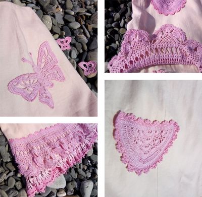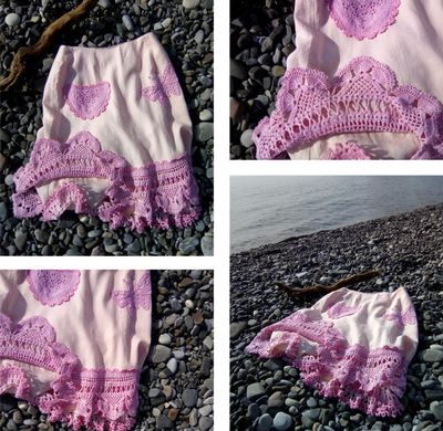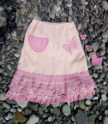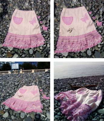 Юбка в стиле бохо выполнена из льняной ткани и вязаного крючком кружева. Само полотно юбки фабричного производства. Кружева – моя ручная работа. Кружева в два яруса, одно под другим, что придает юбке пышность и воздушность. Кармашек настоящий! Длина юбки с кружевом - 67 см. Юбка на подкладке. Юбка: 100% лен. Кружева: 34% хлопок, 33% лен, 33% вискоза. Размер 46-48, но на манекене 44 размера тоже сидит нормально. Примеряла на себя - на моем 48-м сидит «аппетитнее» :))) МАТЕРИАЛЫ Ткань - лен 100%; пряжа – смесь хлопок, лен и вискоза.