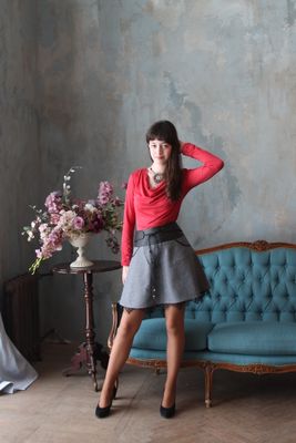 юбка с кокеткой из кожи